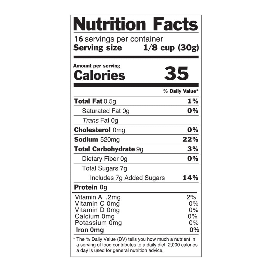 Ketchup (Tomato Concentrate, Sugar, Distilled Vinegar, Salt, Less than 2% of Onion Powder, Spice, Natural Flavor), Mustard (Water, Distilled Vinegar, Mustard Seed, Salt, Tumeric), Garlic Powder, Sugar, Worcestershire Sauce (Dextrose, salt, sugar, caramel color, silicon dioxide, garlic, spices, citric acid, natural spice extracts, vinegar, water), Apple Cider Vinegar, Water, Vegetable Oil, Salt, Honey, Natural Vanilla Extract, Garlic Salt {Salt, Dehydrated Garlic, Silicon Dioxide), Black Pepper, Crushed Red Pepper, Xanthan Gum.